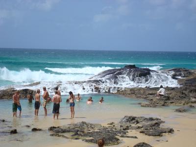 Wo ist denn das Problem, wenn man ein bisschen nass wird?? Aber wir hatten ein paar Maedchen dabei, die auch immer unbedingt auf einem Campingplatz, anstatt am Strand uebernachten wollten. Und warum? ...Damit sie duschen koennen. Was fuer ein Adventure Trip. (Hier mal ein Tip fuers naechste mal: Bucht lieber eine gefuehrte vier Sterne Tour in einem Bus mit Dusche. Und damit auch wirklich nix passiert bitte die Tour fuer Kinder unter 12 Jahren!)