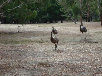 Dann wollten wir eigentlich wieder zurueck zum Bus laufen, weil der Tag echt anstrengend war und wir schon eppes viel gelaufen sind. Aber, weil ich noch unbedingt ein paar Emus sehen wollte, sind wir dann noch ein bisschen weitergelaufen und als wir uns gerade darueber unterhalten haben wie Emus eigentlich aussehen, sind drei Stueck eppes schnell auf uns zugerannt. Wir konnten eigentlich gar nicht reagieren, weil sie so schnell waren. (Aber zum Fotos machen hat es natuerlich gereicht) Es war aber schon komisch, wenn drei so grosse Voegel auf einen zu rennen.