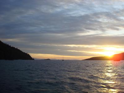 Hier bin ich dann fuer 3 Tage und zwei Naechte auf einem Segelboot gewesen. Wir sind rund um Whitsunday Island gefahren. Das sind eppes viele Inseln, die alle unter Naturschutz stehen. Vom Boot aus waren wir dann schwimmen, schnorcheln oder am Whiteheaven beach (ein Strand mit dem feinsten Sand, den ich je gesehen hab. ich bin gespannt, ob Fiji das toppen kann)